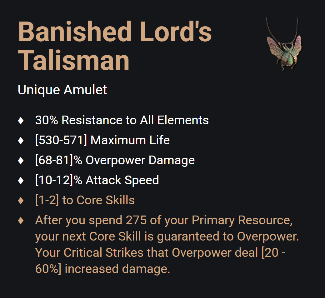 Unique Amulet Banished Lord's Talisman