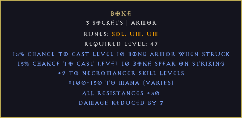 Bone DIABLO 2 D2R NON LADDER