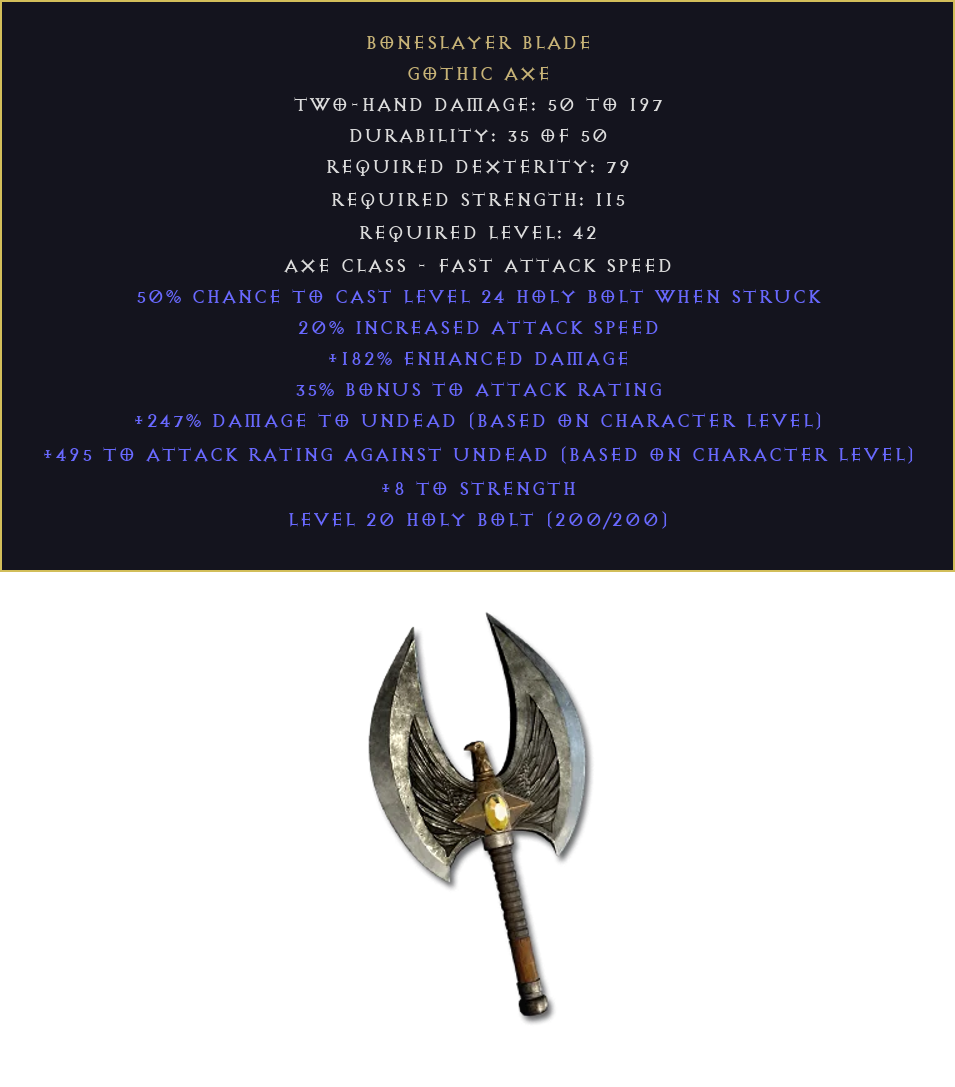 Boneslayer Blade DIABLO 2 D2R NON LADDER