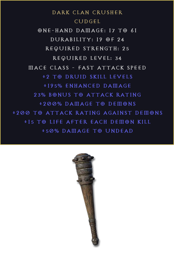 Dark Clan Crusher DIABLO 2 D2R NON LADDER
