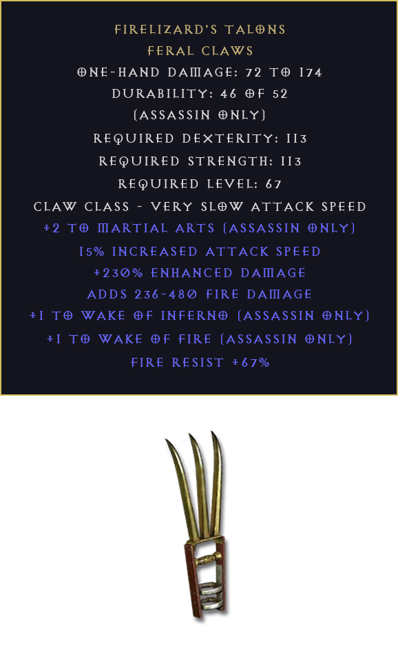 Firelizard's Talons DIABLO 2 D2R LADDER
