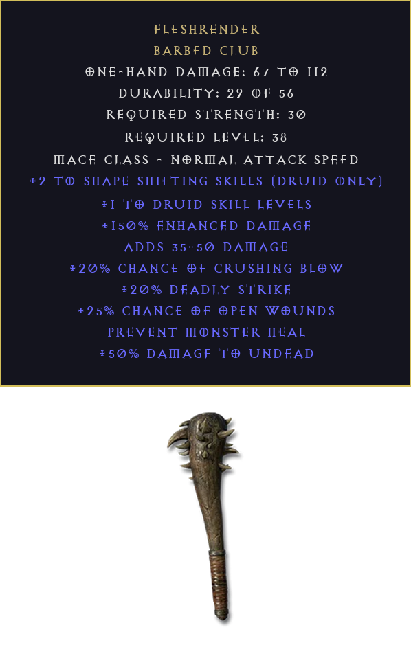 Fleshrender DIABLO 2 D2R NON LADDER