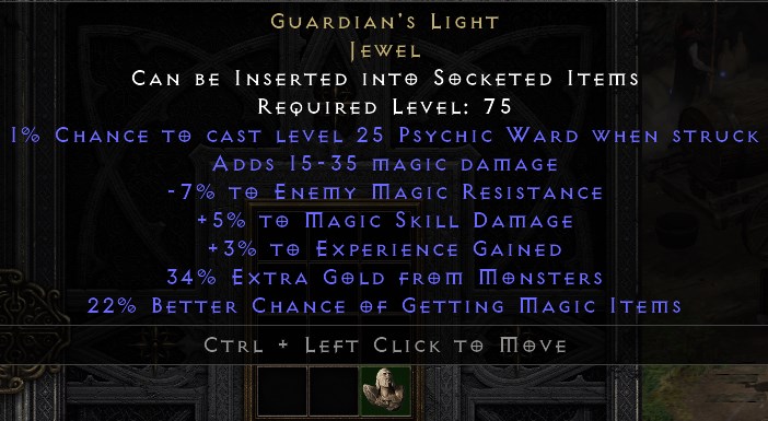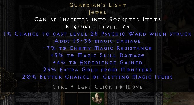 MAGIC GUARDIAN'S LIGHT KLEJNOT D2R ROTW NON LADDER