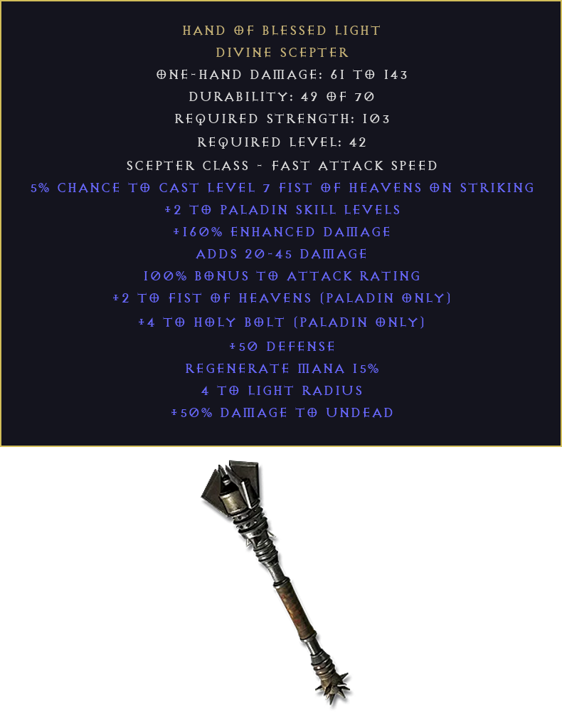 Hand of Blessed Light DIABLO 2 D2R LADDER