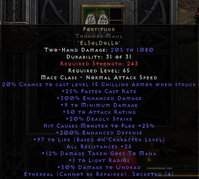 Słowo runiczne HART (Fortitude) w eterycznym Grzmiącym Kafarze (Thunder Maul) - (D2R Dodatek ROTW NON LADDER postacie nierankingowe).