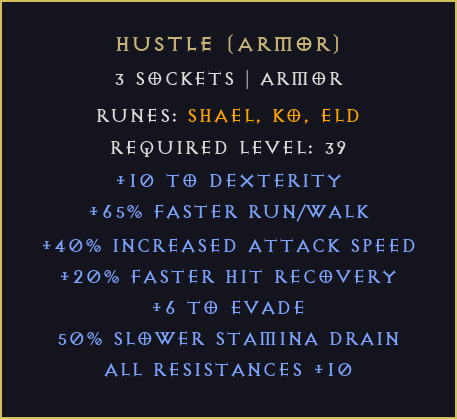 Hustle (armor) - Diablo 2 Resurrected (D2R) Non Ladder (postacie nierankingowe).