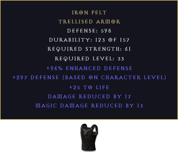 Iron Pelt DIABLO 2 D2R NON LADDER