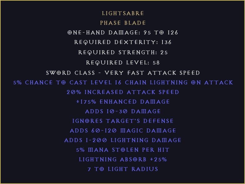 Lightsabre - Diablo 2 Resurrected (D2R) Ladder (postacie rankingowe).