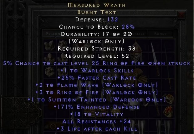 MEASURED WRATH BURNT TEXT D2R ROTW LADDER