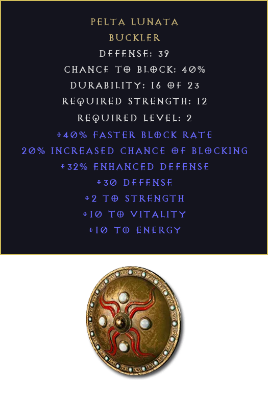 Pelta Lunata DIABLO 2 D2R NON LADDER