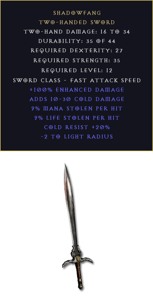 Shadowfang - Diablo 2 Resurrected (D2R) Ladder (postacie rankingowe).