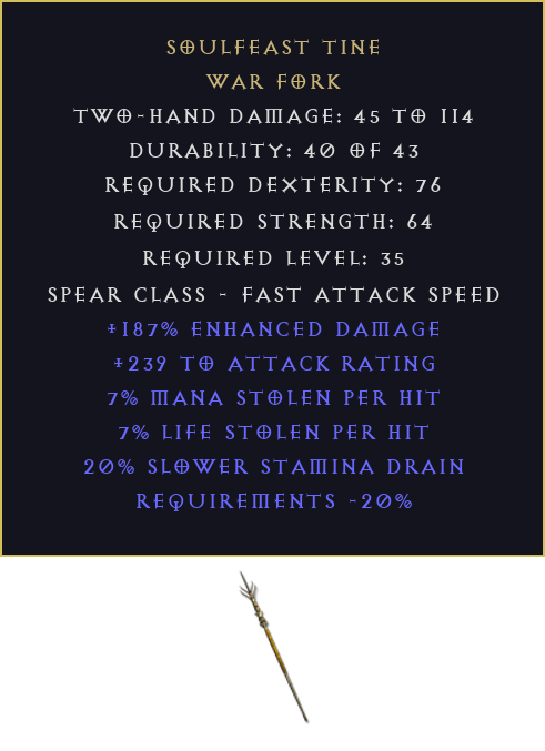 Soulfeast Tine DIABLO 2 D2R LADDER