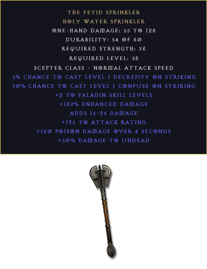 The Fetid Sprinkler DIABLO 2 D2R LADDER