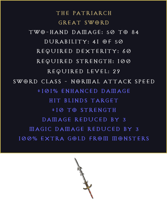The Patriarch DIABLO 2 D2R LADDER