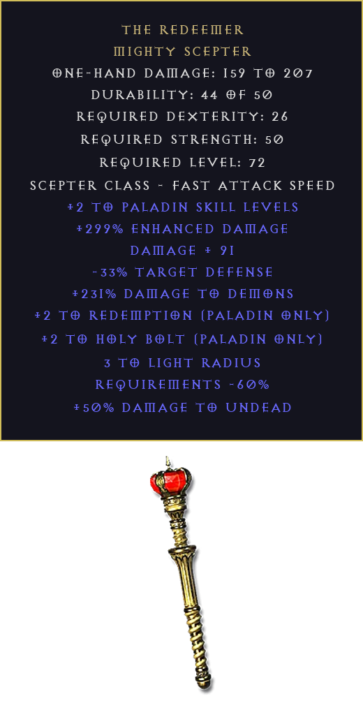 The Redeemer - Diablo 2 Resurrected (D2R) Ladder (postacie rankingowe).